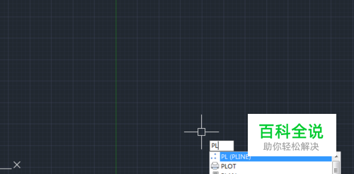 我们输入"PL"命令,进入多段线模式,我们在绘图窗口里点击一点,如图所示;