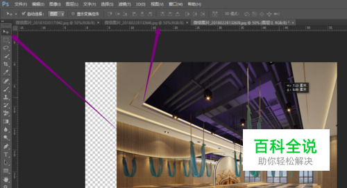 然后使用左上方的移动工具如图所示,可以移动图片,夸文件移动需要鼠标移动到对应文件的名称上。