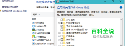 1、打开控制面板— 程序与功能— 启用或关闭 Windows 功能: