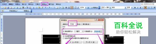 选择表格中的前三行,单击工具栏上的“表格”,下拉菜单,点击“表格属性”,在弹出的对话框中,点击行。勾选“指定高度”并设置为1.5,行高值为“固定值”。