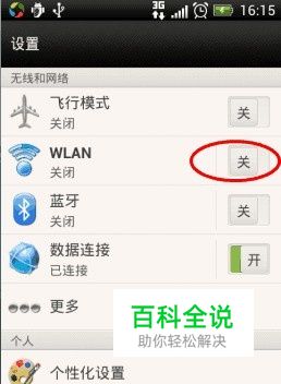 第一步:打开手机WLAN; 点击“设置”; 若WLAN是关闭状态,点击“关”; WLAN会切换至“开”状态;保持“开”状态;即可搜索附件的无线网络;