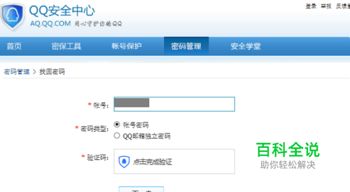 通过QQ登陆界面的找回密码;或者直接登陆QQ安全中心进行:密码管理——找回密码,到达该界面。