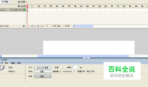 首先启动flash8,新建一个文档,在下面的属性中设置大小为600*600,背景颜色为白色,帧频为5fps。