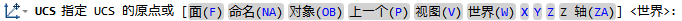 坐标原点 每个坐标系统都有一个坐标原点。如图 目前,坐标原点的位置、方向都是可以改变的,这种坐标就叫UCS(用户坐标系统),它方便了我们很多的操作。 在命令行输入UCS后,可以任意指定坐标原点的位置及方向。