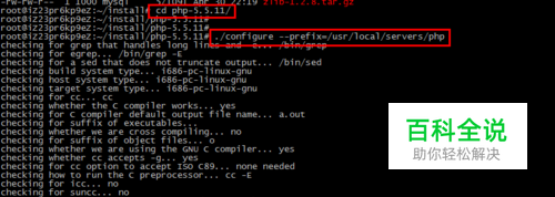 【配置安装变量】:打开解压后的目录-执行命令:cd php-5.5.11;配置安装环境-执行命令:./configure --prefix=/usr/local/servers/php ,“/usr/local/servers/php”是安装路径,可以改成自己喜欢的安装路径。