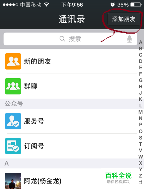 在微信里先按"通讯录",再按"添加"