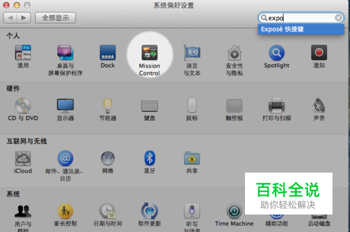 在"个人"栏里找到"Mission Control",或者使用搜索框搜索
