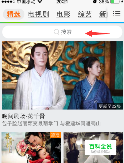点击搜索框后,弹出搜索选项界面,这里我们搜索一下我们想离线缓存的视频名字。