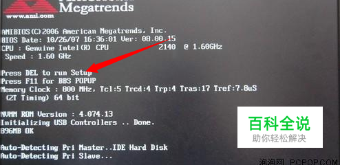 在正式开始之前,还是有必要再提一下。不同品牌的电脑进入bios设置的方法也不尽相同。我们加电开机的时候,通常第一屏会显示品牌Logo,在logo下面一般都会有进入bios的按键提示,或者在电脑开机自检信息中找到。一般情况下,最常见的进入bios的按键有DEL,ESC,F2,有一些品牌的电脑是F1或者F10.