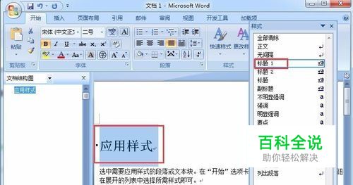 弹出“样式”窗格,在展开的样式列表中选择所需样式即可。