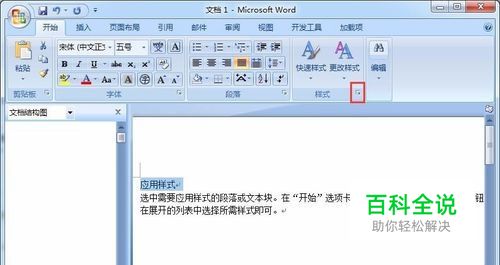 应用样式。选中需要应用样式的段落或文本块。在“开始”选项卡的“样式”组中单击“其他”按钮。