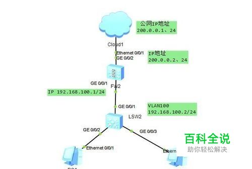 如图所示,三层交换机和防火墙对接,使用户PC1和PC2可以实现上网功能。交换机是三层交换机,可以完成跨网段数据转发。