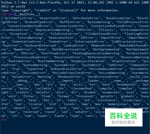 输入 dir(__builtins__) 按下回车键(Enter)。