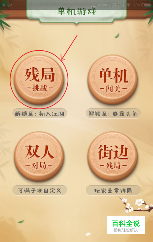 如图所示,打开后,就是残局的界面。破解残局比较按顺序来的,不能跳关。点击打开第一关。