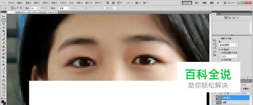 用Photoshop打开一个图片,把眼睛所在的位置放大。