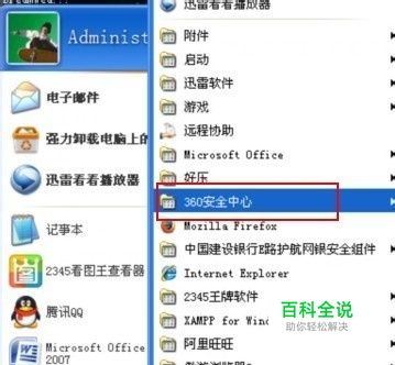 然后选择所有程序,在列出的程序中找到有关360的文件夹
