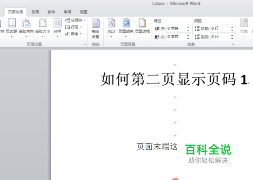 然后在第二页开始插入页码。页码就显示1啦!~
