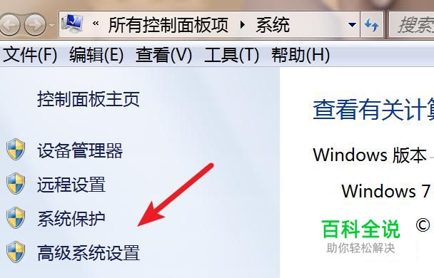 在属性窗口,点击‘高级系统设置’