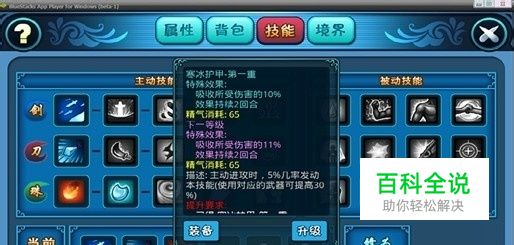 给大家看的这张图是修炼珠系的人物技能。每个修习路线的技能都有它的独特之处。技能分为【主动】与【被动】两类,其中【主动】技能分为“刀”、“剑”、“珠”3个技能系。技能学习限制只与角色当前的修仙境界有关,所以只要满足前置技能已学的条件,且有足够的“修为”即可随意地学习所有技能。 以珠系修仙路线来说,由于笔者长期玩的游戏都是属于挨揍的份,所以选择了技能里有《寒冰护甲》的珠系修习路线。该技能具有吸收伤害的作用。 当然,所有技能都是可以学习到的,只要修为足够。【修为】学习/升级技能时必须的属性,只能通过“修炼”或“双修”获得。修为可以无限获得,即所有玩家最终都可以将全部的技能升到最高级。但有一个值得注意的是修为储存量上限是999,存满修为后将无法再获得修为,必须及时将修为消耗掉。 主动技能的触发都是5%,也就是装备了技能就有5%几率触发该技能。因此装备的技能越多,历练切磋时,越能触发技能的释放。而装备对应的武器,则能增加30%的技能触发几率。从下图我们不难看出主动技能的强力。 BUFF是技能中自带的效果,也是本游戏的一大亮点。各种控制、削弱、恢复、增益效果都是能在游戏升级切磋中带来意想不到的战斗效果。 最最重要的被动技能可以对人物的属性起到加成作用,包括生命、攻击、防御、命中、闪避等等。胜利往往取决于这被动技能中的分毫噢!
