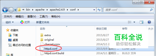 打开..\wamp\bin\apache\apache2.4.9\conf文件夹,找到apache的配置文件httpd.conf