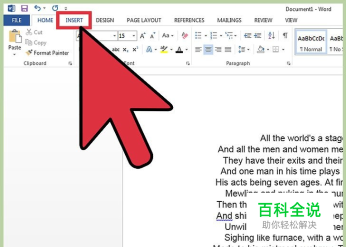 点击文件上面MS Word工具栏的“插入”或“文档元素”。Windows计算机上用排版,苹果计算机上用文档元素。