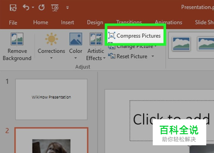 双击一张图片。这么做会打开演示文稿窗口顶部的格式选项卡。 如果你还没有打开演示文稿文件,请先双击文件,来打开它。 双击文件中的任意一张图片,都能打开“格式”选项卡。