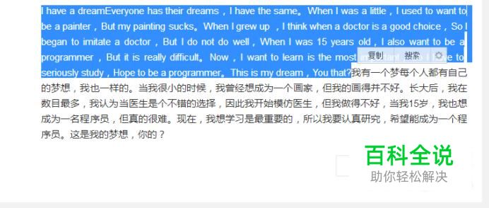 首先在一个网页中选取你要翻译的内容并点击复制,如下图所示。