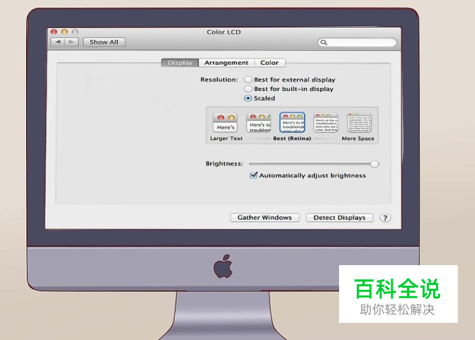 选择分辨率。OS X会尝试为你设置一个适合双显示器的分辨率,你当然也可以自己设置分辨率,但是如果不选择推荐的分辨率,画面可能会不自然地拉伸或模糊。