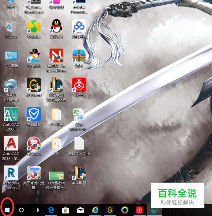 首先打开电脑,在卓面上点击下图中左下角红圈中的图标。