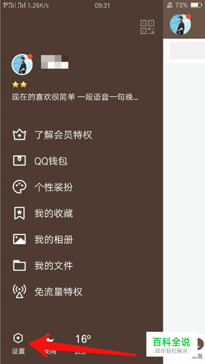 首先进入QQ,点击消息页面左上角头像,然后点击左下角的“设置”。