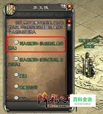 当满足以上条件后,去皇城与NPC破魔阵管理员(488,324)对话,选择【闯入破魔阵】。