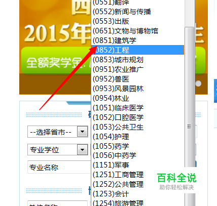 打开中国研究生招生信息网的官网,然后在网页左边可以看到硕士目录查询,在身份里面不填,只需要选择专业学位或者学术学位,然后选择所属领域。