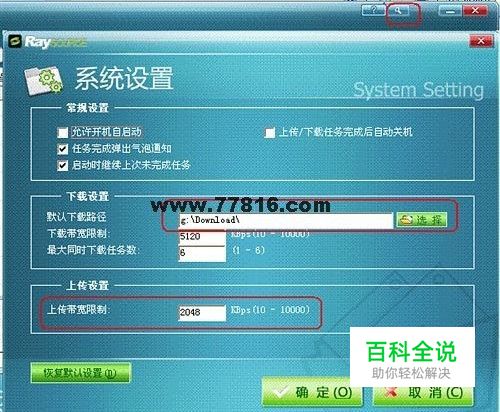 1、首先应该做的,就是在下载前先清空raysource下载缓存文件夹里的所有文件,原因是当用raysource专用连接下载rayfile网盘资源时,系统默认启动peer.exe进程,检索位于raysource下载缓存文件夹里的文件,当有其他人正在rayfile网盘上下载与该文件夹里已有的文件相同的文件时,raysource.exe会从你的电脑中上传该文件给其他人。其实p2p软件共享带宽无可厚非,但是raysource的默认上传速度开的很高,会占用许多带宽,严重影响下载速度。raysource的缓存文件夹的默认下载路径是C:\Download\ ,可以根据需要移动到其他的硬盘分区,设置方法如下图: