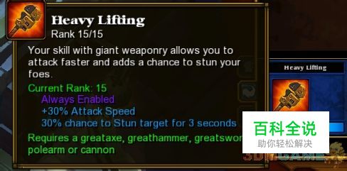 所以你需要的武器是:Great Axe / GreatHammer / GreatSword / Polearm 火焰天赋里面还需要点是第一个: