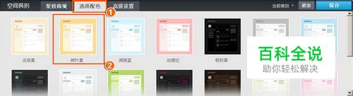 选择配色——色调决定您空间中间的内容区域和文字用什么颜色。 如果要更换文字或内容区颜色,点击喜欢的色调即可更换。左侧的筛选栏帮您更快得找到想要的颜色。