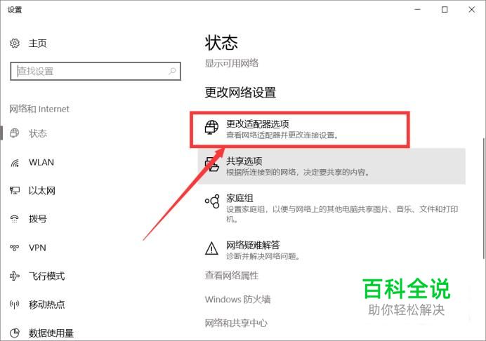 首先打开电脑设置,点击左侧的更改适配器选项。