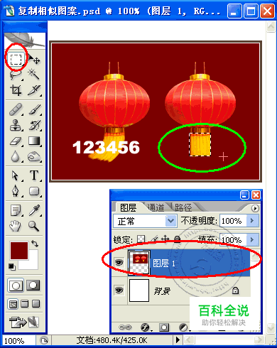 先打开一张图,按“Ctrl+J”图层1,按“矩形选框工具”,把需要的部分圈起来。
