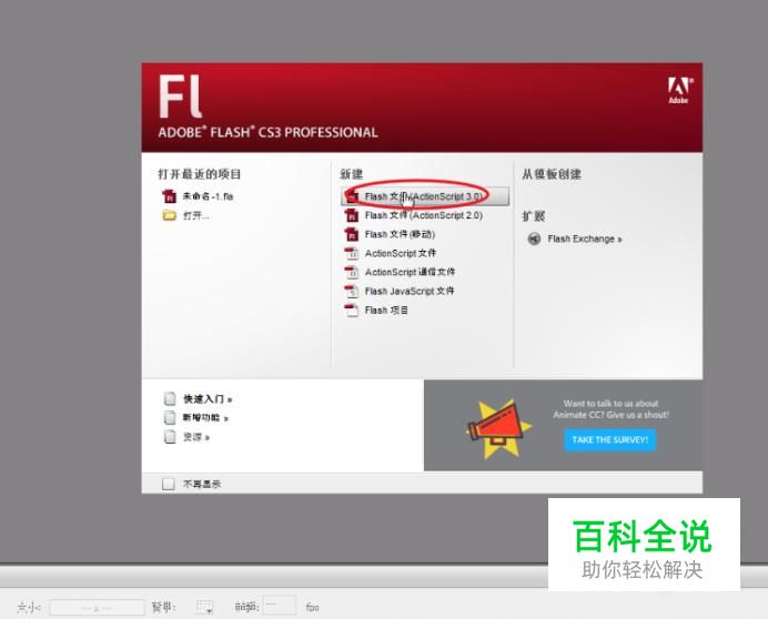 打开Flash软件,选择任意一个文档模式新建。