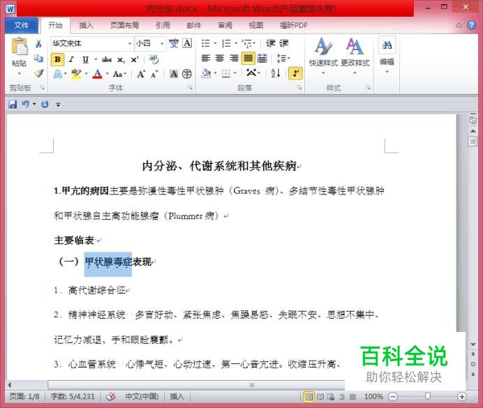 我们以给”甲状腺毒症“添加着重号为例。 先选中”甲状腺毒症“