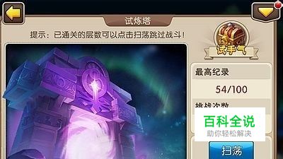 首先给大家介绍50级之前通过54层试练塔的阵容和方法。