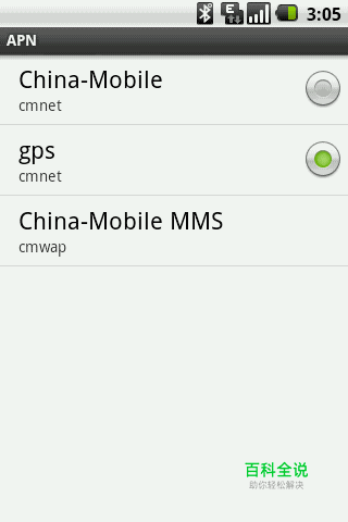 第二步 修改APN配置 设置 无线和网络 移动网络 接入点名称 MENU 新建APN 名称 GPS APN cmnet 代理 端口 用户名 密码 服务器 * MMSC null 彩信代理 彩信端口 MMC 460 MNC 00 身份验证类型 APN类型 default,supl MENU 保存 然后在GPS接入点的右边小圆点长按 设置GPS为默认接入点