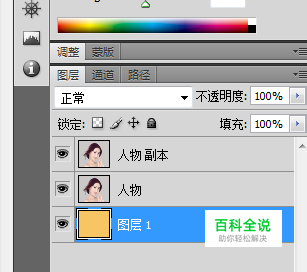在“人物”图层创建一个名为“图层1”的新图层,填充你喜欢的颜色,(或者 你选定的背景)