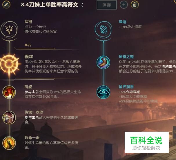 天赋推荐:主系符文为精密,副系符文带启迪,小编推荐的符文如下图所示。