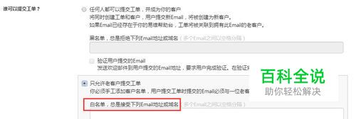 有些企业会对进入社区提交工单的客户做限制,以避免过多无效工单,这就需要用到Email白名单控制。