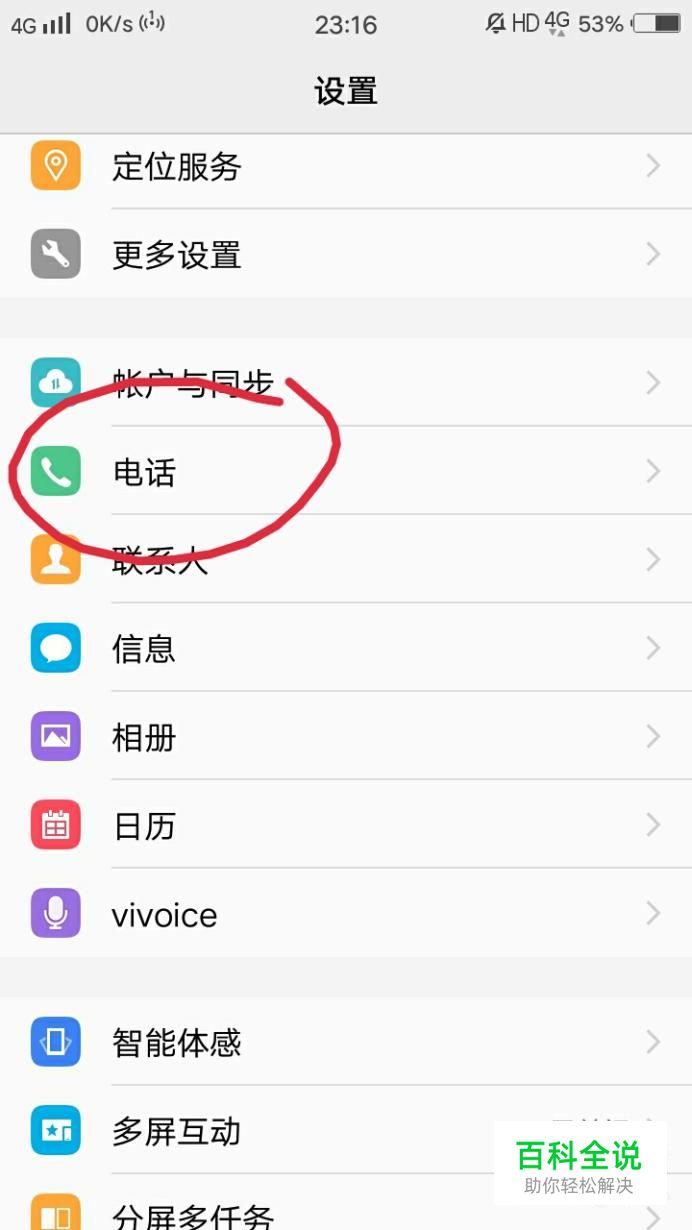 首先找到设置,然后打开,往下滑,找到电话。