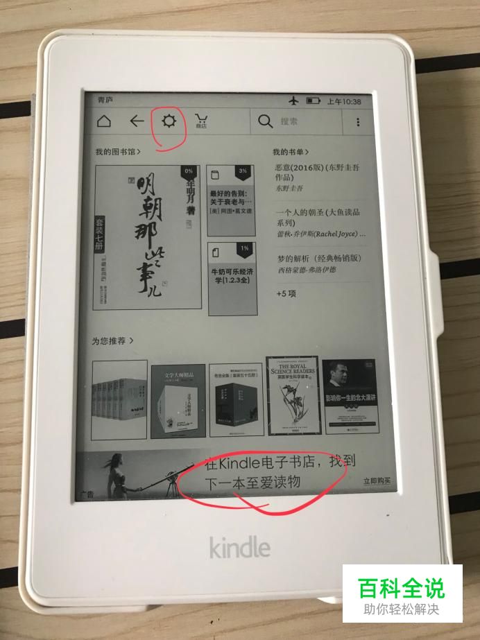 新买来的kindle锁屏页面是广告,商城页面下面也是广告,重要的是还关不掉。这就非常使人苦恼了。我们点击如图所示的齿轮标志。