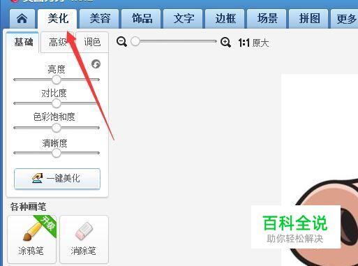 点击美化。接着在导航页面的上方点击美化,然后在这里就能进行图片的处理了。