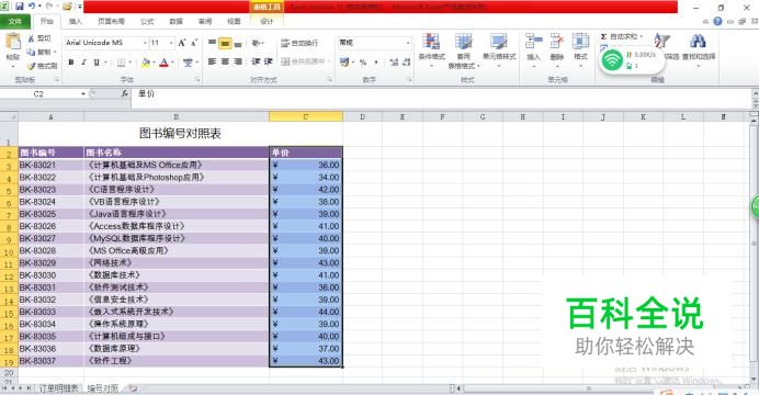 打开电脑,点击excel,并将两个表在同一个excel表格中打开,图中可以看出需将“对照编号”中“单价”的数据引用到“订单明细表”,如图