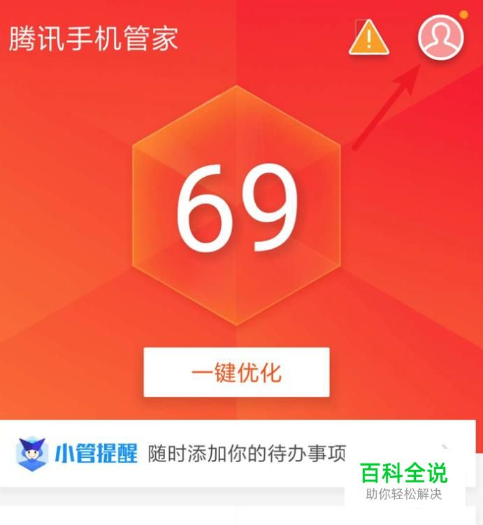 打开手机管家,点击右上角的头像图标