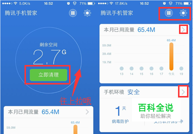 相对于旧版本的管家来说,新版本更加一目了然了,主界面体现了广大同胞最关心的问题咯:垃圾清理、流量监控、骚扰拦截、支护保护。赞一个!